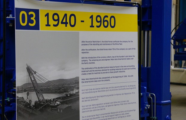 Am Stammsitz in Andernach ließ Frau Olga Vercammen, Gesellschafterin der Masa, während der Eröffnung der Feierlichkeiten am Freitag, 26.06.2015 in einer bewegenden Rede ihr „Leben mit der Masa ab 1968“ Revue passieren. Der Traum ihres Mannes Peter, Enkel des Firmengründers Alois Smaritschnik, hat sich mehr als bewahrheitet: Die vollautomatischen Masa Steinfertigungsmaschinen haben seit den 1970er Jahren nicht nur den amerikanischen Markt, sondern auch die übrigen Kontinente erobert. Seitdem produzieren Masa Maschinen weltweit hochwertige Betonsteine aller Art.